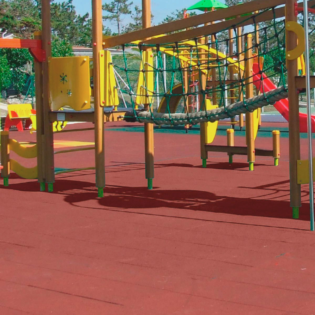 Aplicaciones: Ideal para áreas de juegos infantiles al exterior como parques, patios y hasta para gimnasios al aire libre.