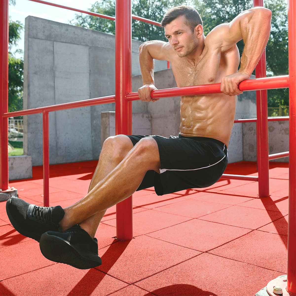 El material aglomerado con el que es fabricado el piso de caucho reciclado es particularmente suave para absorber los golpes de las caídas y además está certificado como un material seguro para entrar en contacto con la piel.